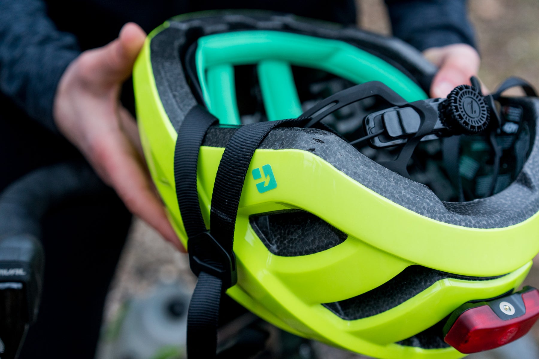 ユニバーサルLED(別売り)をヘルメットの背面のダイレクトマウントに取り付けることで、安全性と視認性を向上させます。